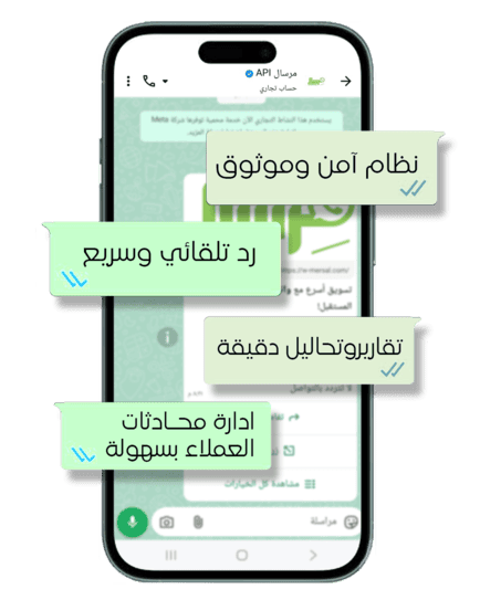 مع WhatsApp Mersal API يصبح الرد السريع جزءًا من نظامك، وليس عبئًا على فريقك. كل رسالة يتم التعامل معها فورًا وباحتراف.